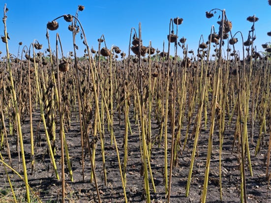 2025-ben hány hektáron termesztett kukoricát és napraforgót, és mekkora terméskiesést tapasztalt;