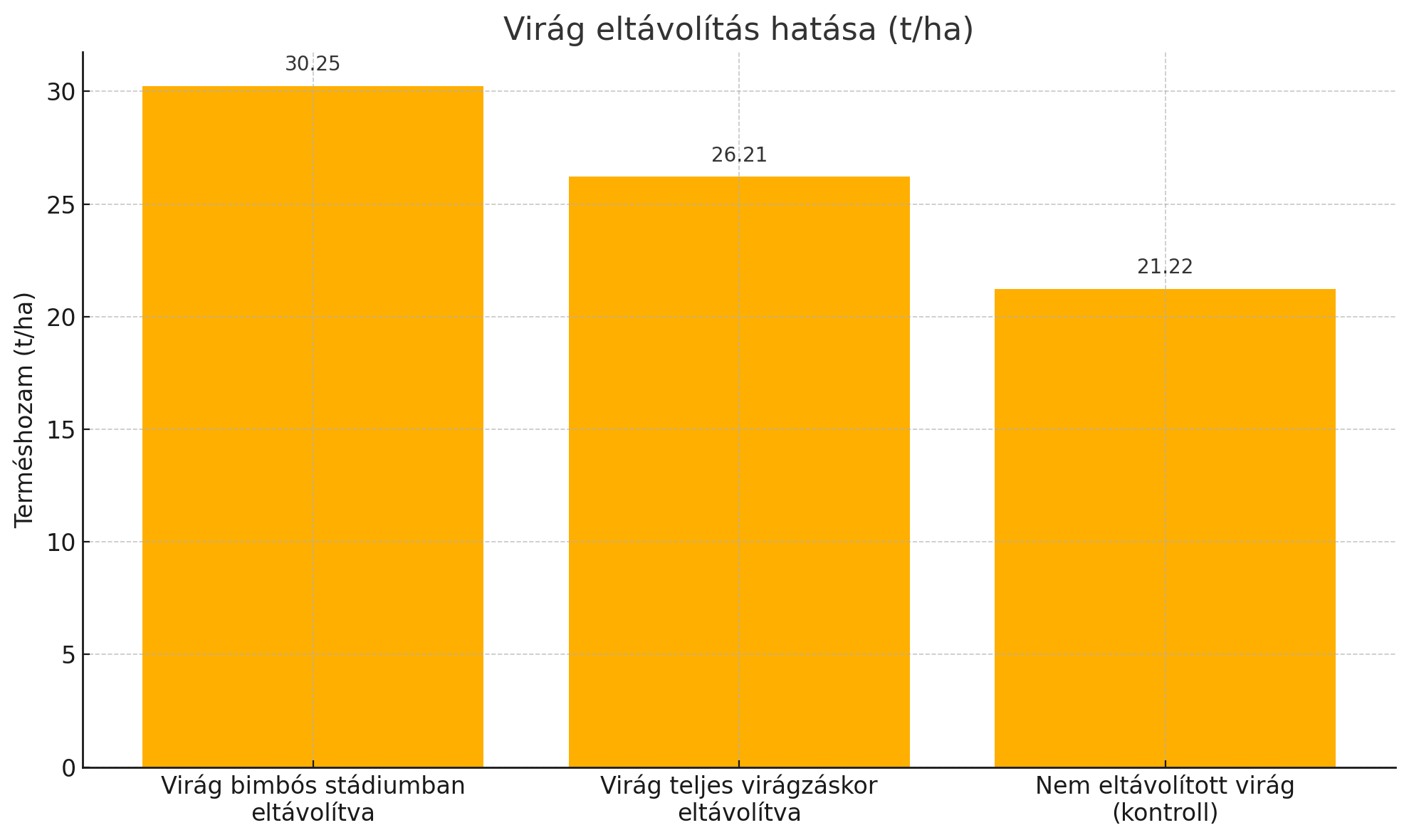 Virág bimbós stádiumban eltávolítva: 30,25 t/ha