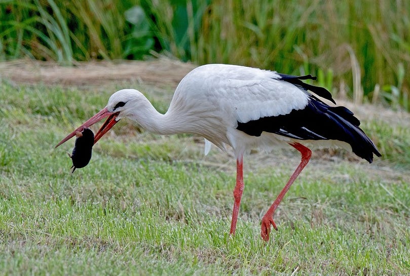 🐭 Különleges kapcsolat: fehér gólya vs. mezei pocok