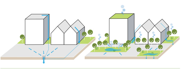 Ez egy nagyon összetett feladat ami a mai városkialakítási szemlélet jelentős felülvizsgálatát és átalakítását igényli. Ilyen beavatkozás például az egyre gyakrabban hangoztatott stockholm faültetési rendszer, a vízáteresztő burkolatok, a biodiverz évelőágyak, a városi rétek és méhlegelők kialakítása, esőkertek, záportározók, zöldtetők létrehozása és a városi vízfolyások rehabilitációja, revitalizációja is.